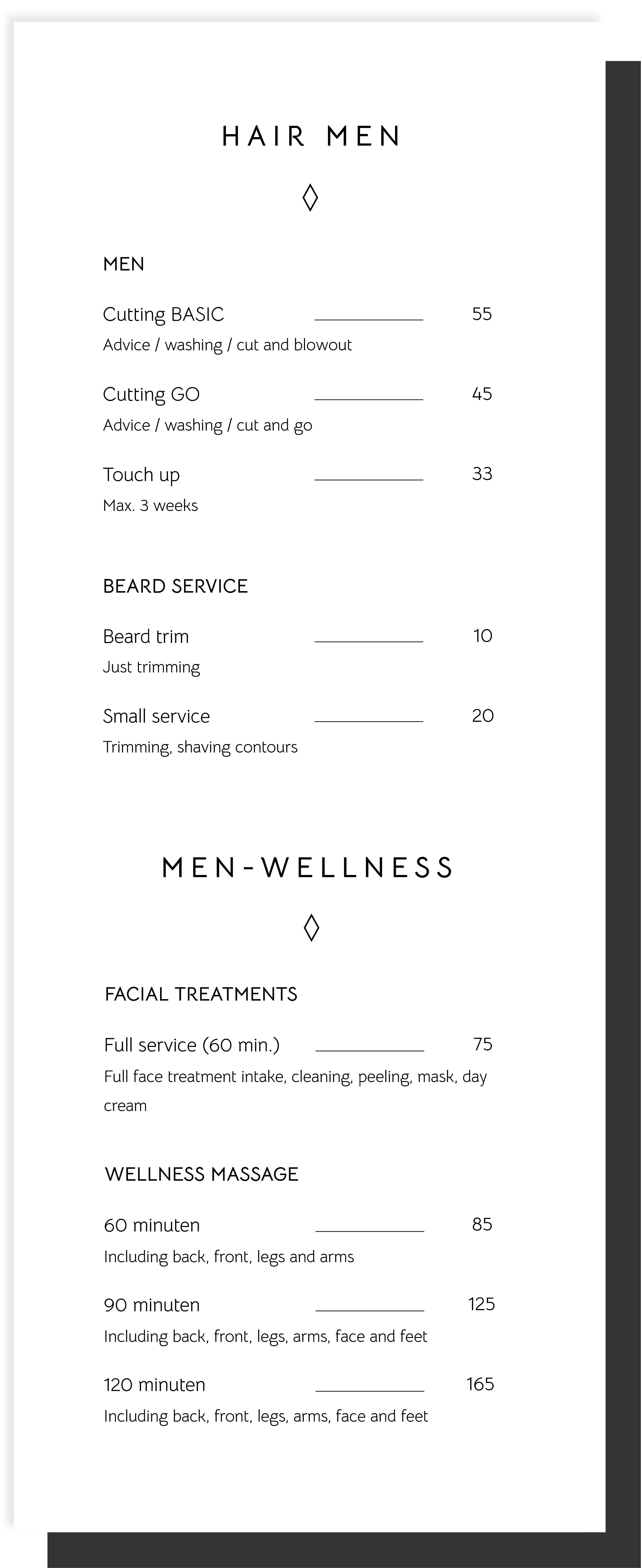 In addition to hair services, I also offer a selection of treatments tailored specifically for men, including wellness massages and facial treatments, creating a complete and refined grooming experience.